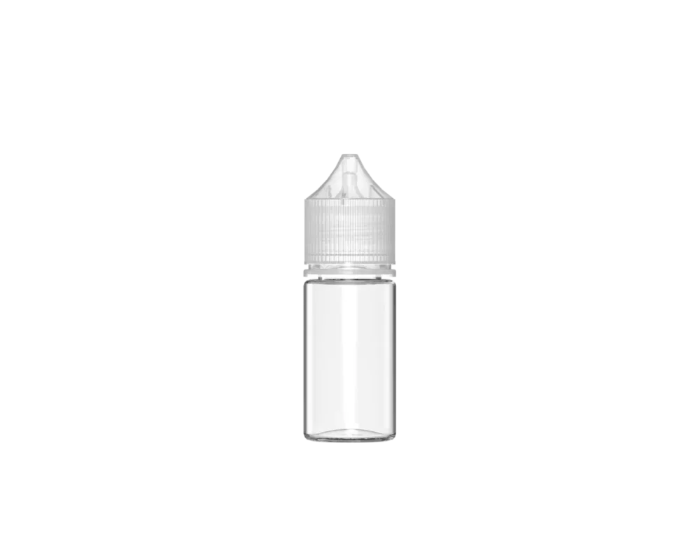 30ML CR STUBBY REDUCER UNICORN BOTTLE WITH TAMPER EVIDENT (CLEAR BOTTLE WITH CLEAR CLOSURE)